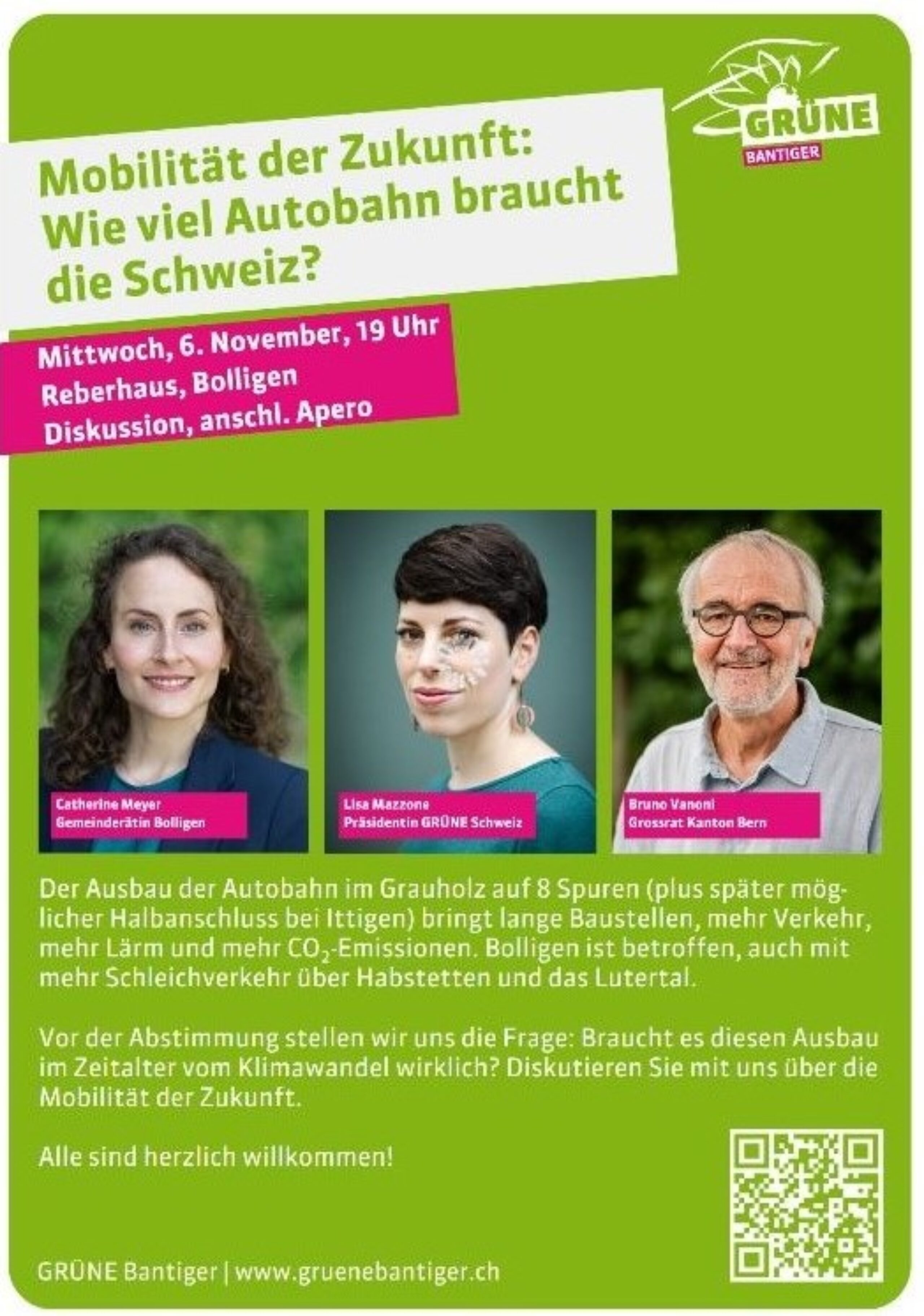 „Wieviel Autobahn braucht die Schweiz?“ Diskussion in Bolligen mit Lisa Mazzone!
